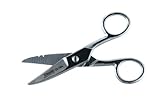 Jonard ES-1964, The Electrician Scissors are designed for heavy duty use. Made of high carbon steel with a special hardening process for greater durability and nickel plated for that professional look. The Electrician Scissors are notched to strip 19 and 23 AWG wire and one blade is serrated. A scraper and file are on the back of the blade. Holds edge even when used on fiber and kevlar based cables. ...